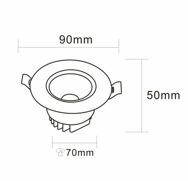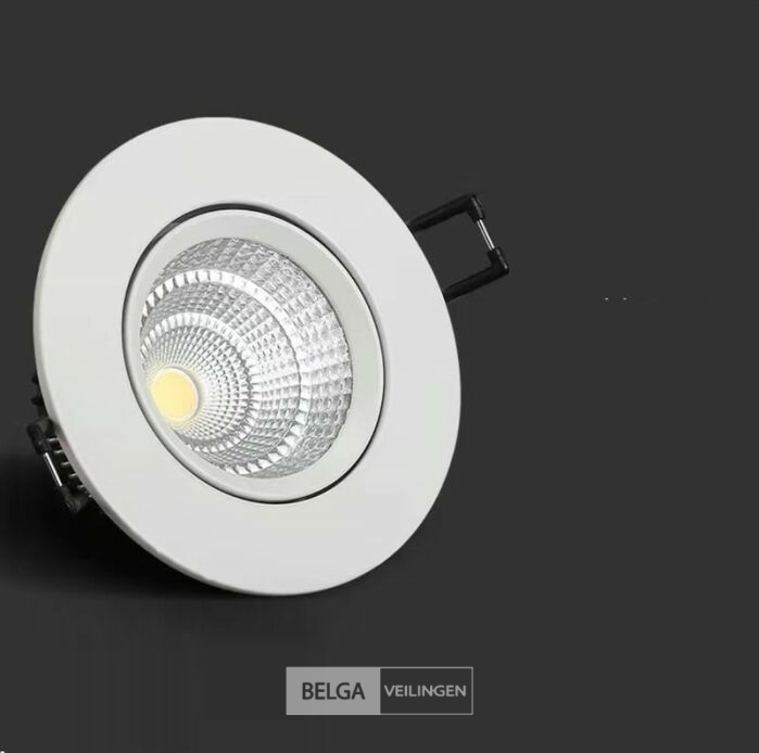 50 x Verstelbare inbouwspot -LED COB -7W - 6500K -Rond -Kleurtemperatuur : 6500K - Lumen : 630 - Afmetingen/mm : 85 x 70 mm - Spanning : 220-240V (50/60Hz) - IP-waarde : IP20 - Installatiediameter : 70 mm - Levensduur/uren : 30.000 -Kleur : wit - Stralingshoek : 40°