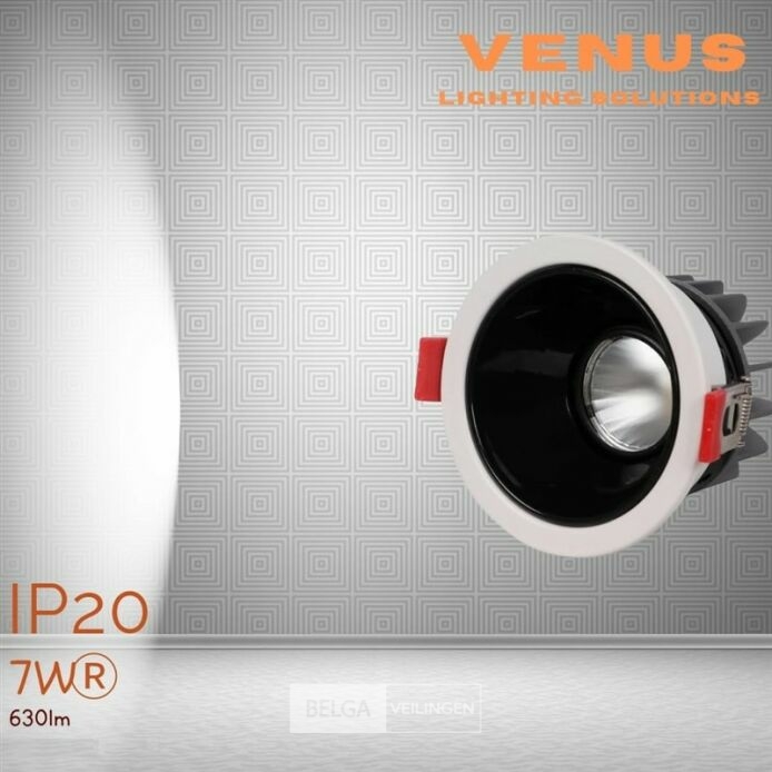 50 x Verzonken inbouwspot (UG-07) - 6500K - Wit/Zwart - Model : inbouw - Vorm : rond - Productkleur : zwart/wit - Levensduur/uren : 25.000 - Lumen : 630 - Stralingshoek : 40° - Indoor - Geschikt voor gebruik : binnen - IP-waarde : IP20 - Spanning : 175-265V - Afmetingen/mm : Ø 86 x 74 x Ø 75 - LED COB - Kleurtemperatuur : 6500K - CRI(RA) : >80 - Vermogen : 7W