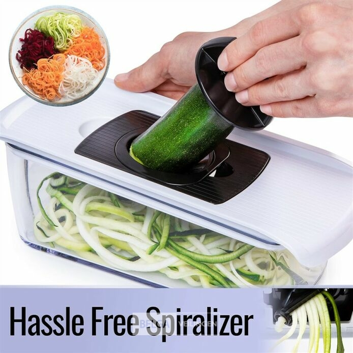 Grootste functionaliteit op de markt: 6 verwisselbare messen voldoen aan al uw snij- en raspbehoeften, terwijl onze spiralizers perfect zijn voor zoedels, gezonde groentepasta's en prachtige garnituren.