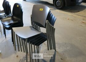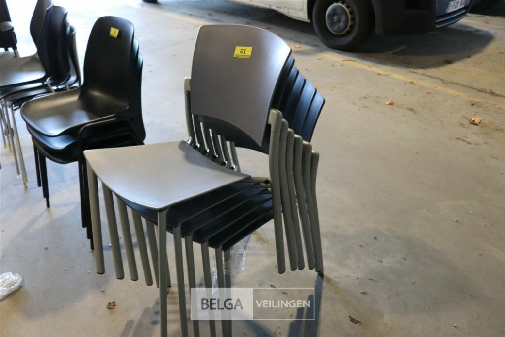 6 licht grijze plastieken stapelstoelen