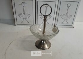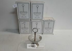 6 x Etagere totale hoogte 16 cm inox voet glas 10 cm