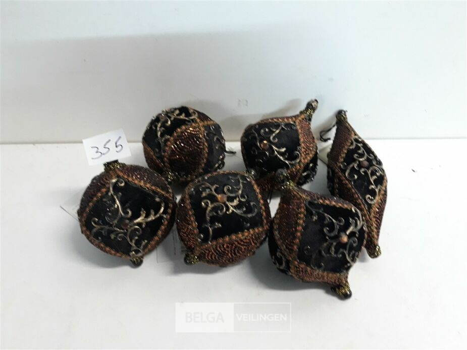 6 x Kerstballen stof mix bal-tol-traan 10 cm