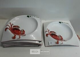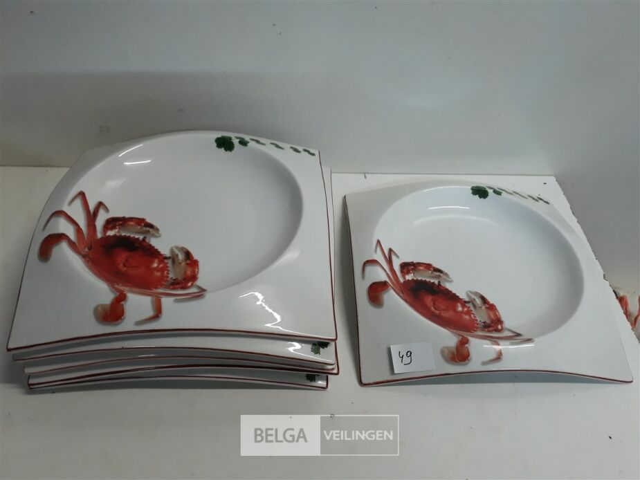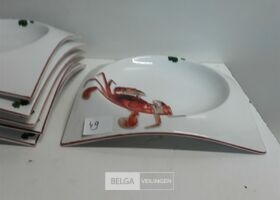 6 x Kreeftenbord porselein 25x25 cm gebogen bord