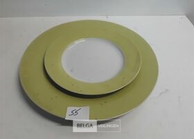 6 x Ontbijtbord 19 cm + 3 x platte borden 27 cm porselein met gekleurde rand