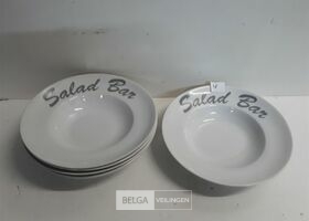 6 x Saladebord porselein 27 cm 5 cm diep