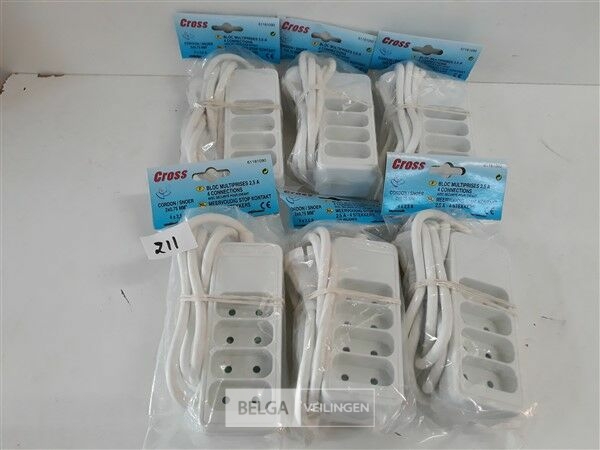 6 x Stekkerblok voor 4 platte stekkers kabel 1,5M