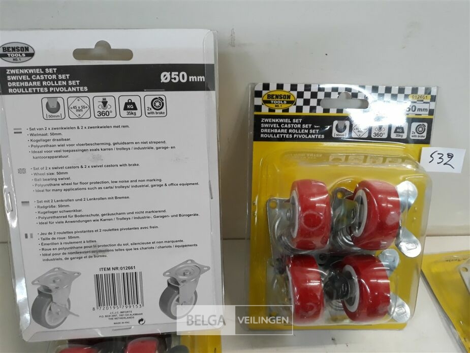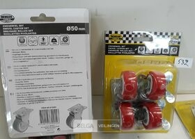 6 x Zwenkwielen rood 50 mm 4 stuks 2 met rem max 35 kg