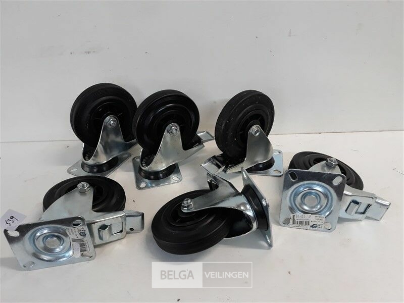 6 x Zwenkwiel met riem 125 mm pvc velg max 100 kg