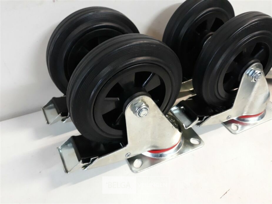 6 x Zwenkwiel met rem pvc velg met rubberen band 160mm max 150kg