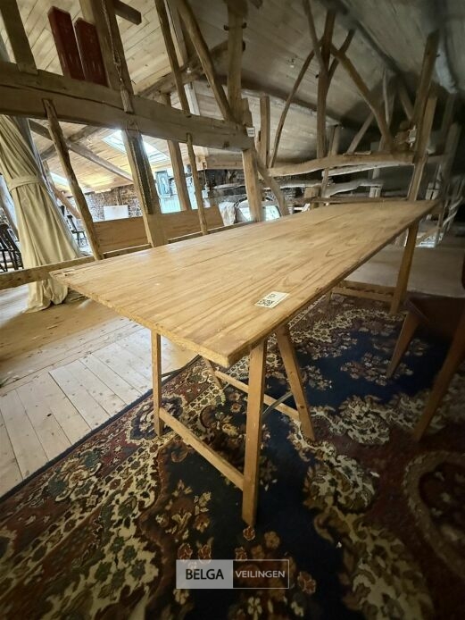 6x houten schragen + 3 tafelbladen L225xB80 cm