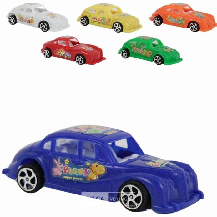 Race auto 10,5 cm in 6 kleuren- met pull-back motor - Je kunt de auto vanzelf laten rijden door hem op de grond te zetten en hem een stukje naar achteren te trekken.