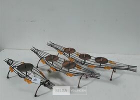 7 x Houder voor stomkaarsen 2 x 1 kaars 30 cm + 2 x 2 kaarsen 40 cm + 3 x 3 kaarsen 50 cm koper kleur met oranje deco