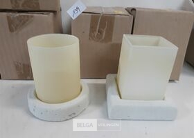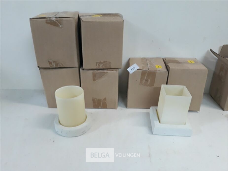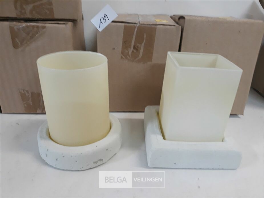 7 x Kaarshouder voet 10 cm uit gips + beschermglas 10 cm 4 x rond + 3 x vierkant