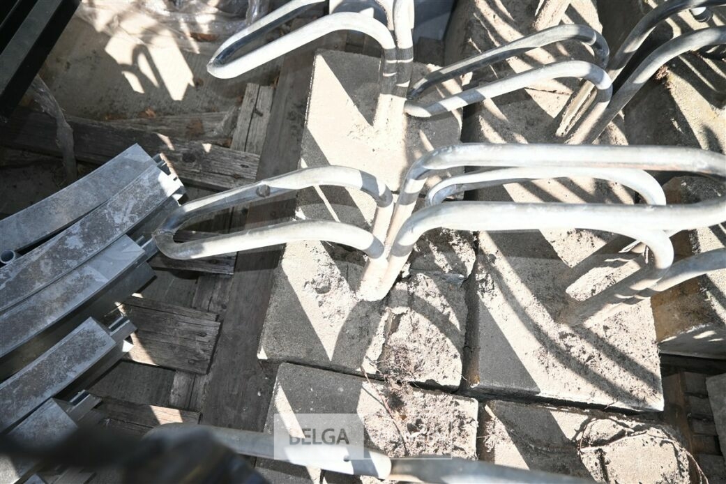 7 x metalen fietsrek met betonblok (30x30x20cm), hoogte 75cm