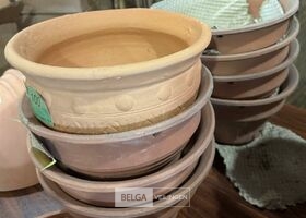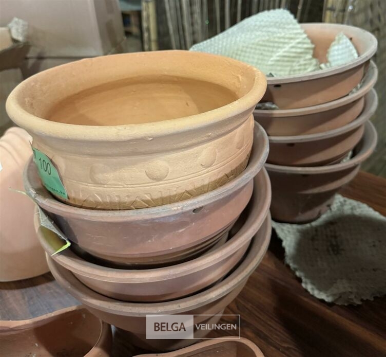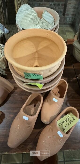 8 stuks ronde terracotta bloempotten en klompen - afm klompen : 25x12x8 cm - bloempotten : Ø 24 x H 16 cm
