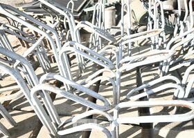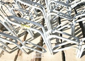 8 x metalen fietsrek met betonblok (30x30x20cm), hoogte 110cm