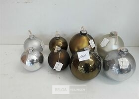 8 x Olie lampje rond dia 8-10 cm groen/zilver mat/blinkend + 4 navulling lampenolie