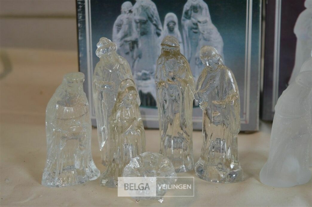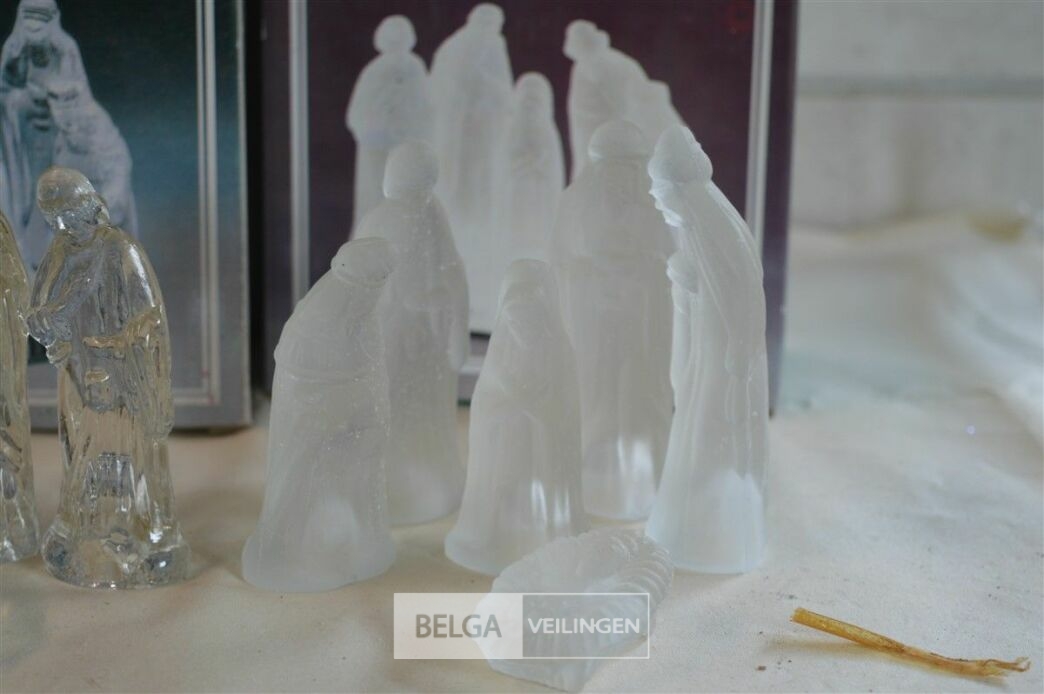 9 vintage nativity glas set (glazen onderleggers ontbreken)