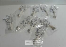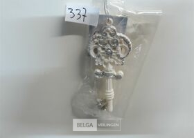 9 x Hangdeco sleutel 12 cm zilver/wit
