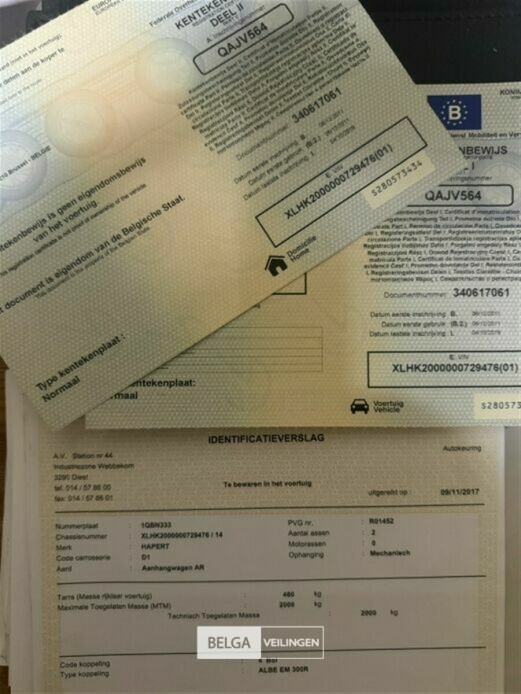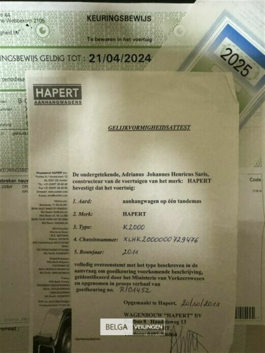 | Documenten: | Ja, keuringsbewijs, gelijkvormigheidsattest, deel 1 en deel 2 |