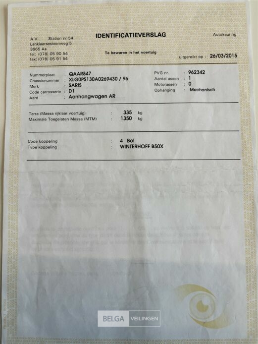 Belga Veilingen of één van haar partners is niet de eigenaar van de te veilen kavels en dus ook niet de verkoper. De veiling vindt plaats in opdracht van derden alsook de facturatie.