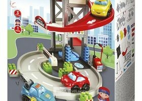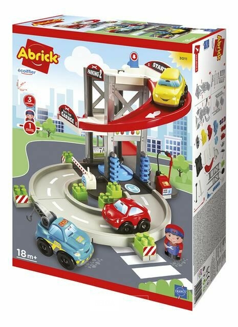 Eccoiffier Abrick-garage. Schitterend uitgerust, een waar paradijs voor autootjes: met carwash, benzinepomp, circuit met lanceerder-Dreamland retour-zo goed als nieuw-verpakking licht beschadigd