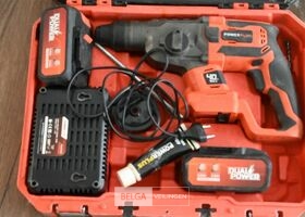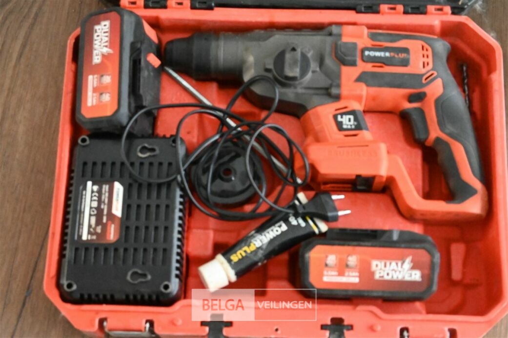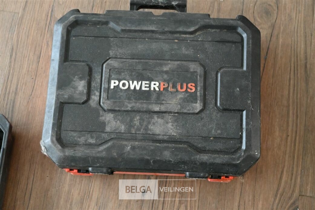 Accu klopboor machine, merk Power Plus, compleet met 2 batterijen en lader, in opbergkoffer. Nog werkend.