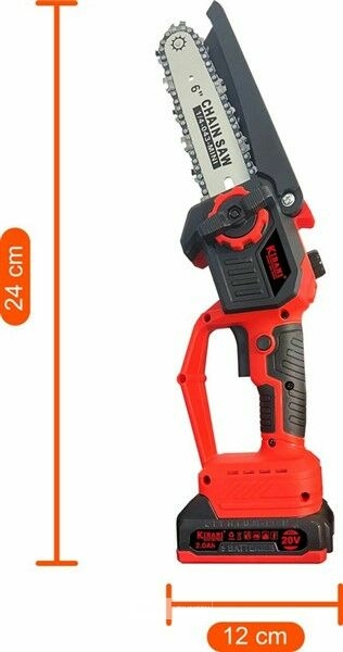 Accu Takkenzaag 20volt - Elektrische Zaag - Draadloos - Inclusief 3kettingen - Mini Kettingzaag - 15 cm - Met Opbergkoffer-Met de Kibani Accu Takkenzaag kun je gemakkelijk alle bomen en struiken bijtrimmen. Doordat het een draadloze takkenzaag is, kun je hem overal gebruiken waar je hem nodig hebt. Het is het ideale apparaat voor alle klusjes in je tuin. Door het display aan de zijkant kun je altijd zien hoe vol je batterij is, zodat je precies weet wanneer je hem moet opladen.