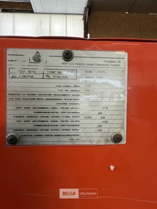 ACV mazoutcombiketel, type BNE3, 120 liter, 70x70x160cm + circa 5 buizen (diameter 25cm en lengte 100cm) + 1 buis met t-stuk