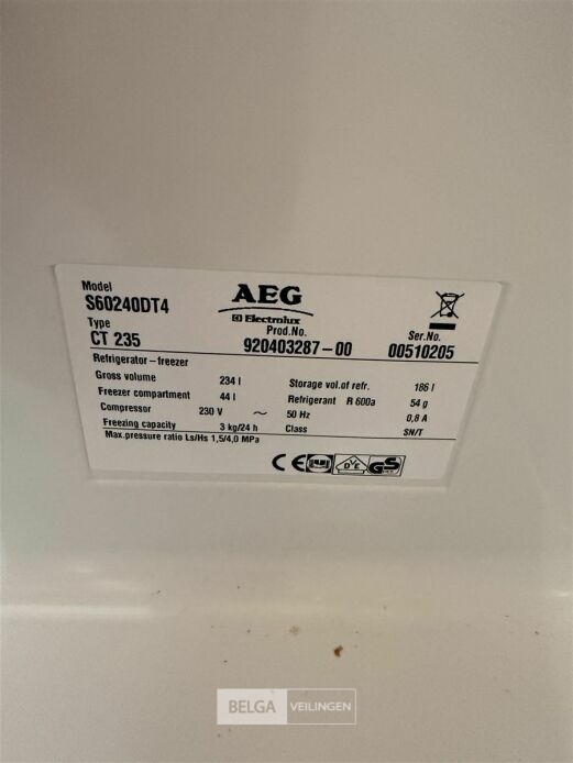 AEG koelkast + diepvries, 220V, B55 x D60 x H140 cm (zonder inhoud) - werkend - locatie verdiep 1