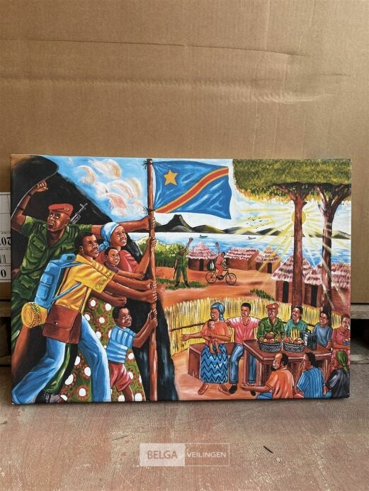 Afrikaans kunstwerk op doek (afm. ± 70 cm x 50 cm)