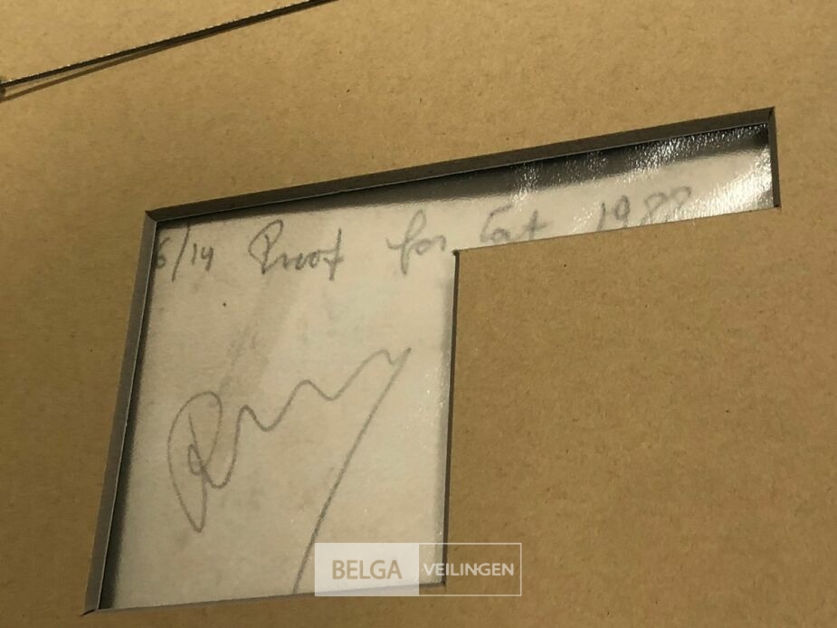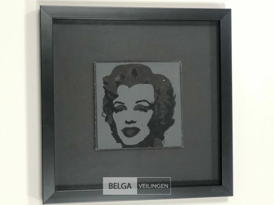 Marilyn zeefdruk - Genummerd 5/14 - uitg. Brillo box Catalogus - in kader 33,5x33,5 - Verso "proof for cat. 1988" gesigneerd Ronny Van de Velde - opgehoogd 15x15cm - Galerijprijs 1500 euro
