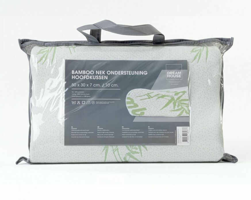 1xBamboe Neksteun Kussen 50x30x10cm-Ervaar ultiem comfort tijdens het slapen met ons Bamboe Neksteun Kussen. Dit orthopedische hoofd- en neksteunkussen is gevuld met 100% Viscogel traagschuim van 1 geheel stuk en biedt een perfecte balans tussen stevigheid en zacht comfort. Het kussen is geschikt voor rug-, buik- en zijslapers en helpt tegen nek- en hoofdpijnklachten.