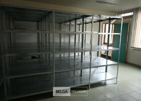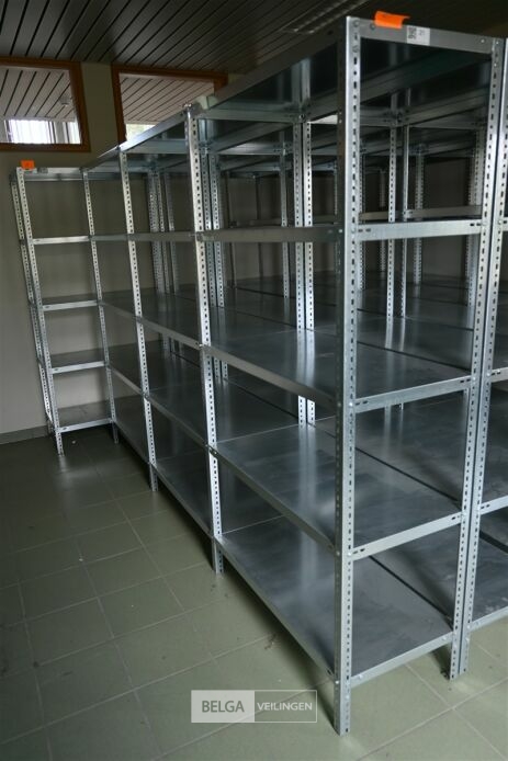Gegalvaniseerd rek met 3 elementen van afm ±100x50x200 cm, 5 leggers, te demonteren (kavel te vinden in archief 1ste verdiep)