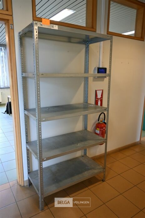 Gegalvaniseerd rek met 3 elementen van afm ±100x50x200 cm, 5 leggers, te demonteren (kavel te vinden in archief 1ste verdiep)
