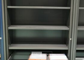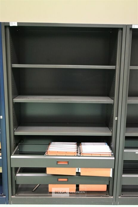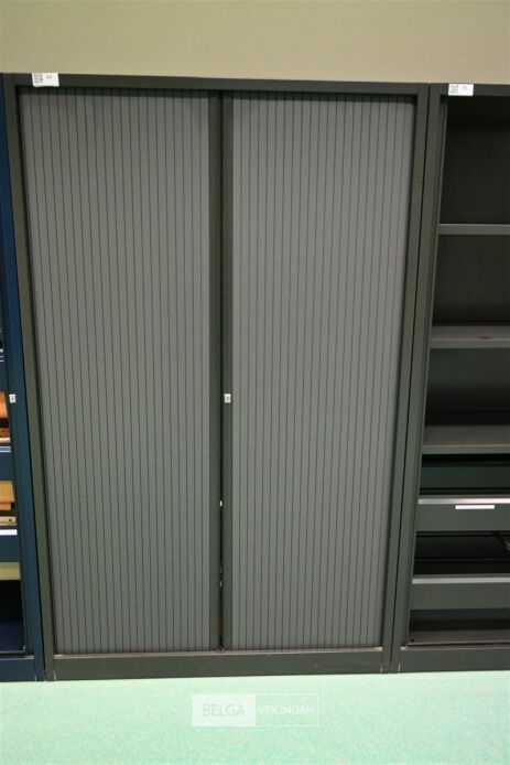 Archiefkast, Donkergrijs met donkergrijze roldeuren, 120 x 45 x195 cm, 3 Leggers en 2 hangklassementen