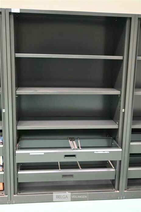 Archiefkast, Donkergrijs met donkergrijze roldeuren, 120 x 45 x195 cm, 3 Leggers en 2 hangklassementen