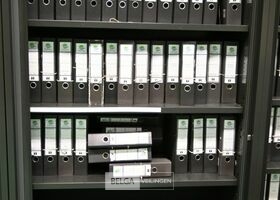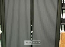 Archiefkast, Donkergrijs met donkergrijze roldeuren, 120 x 45 x195 cm, 4 Leggers (zonder inhoud)