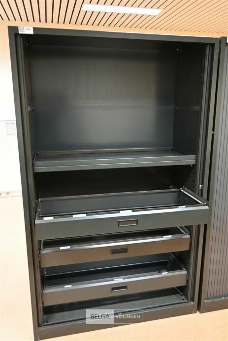 Archiefkast, Donkergrijs met donkergrijze roldeuren, 120 x 45 x195 cm, 2 Leggers en 3 hangklassementen
