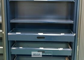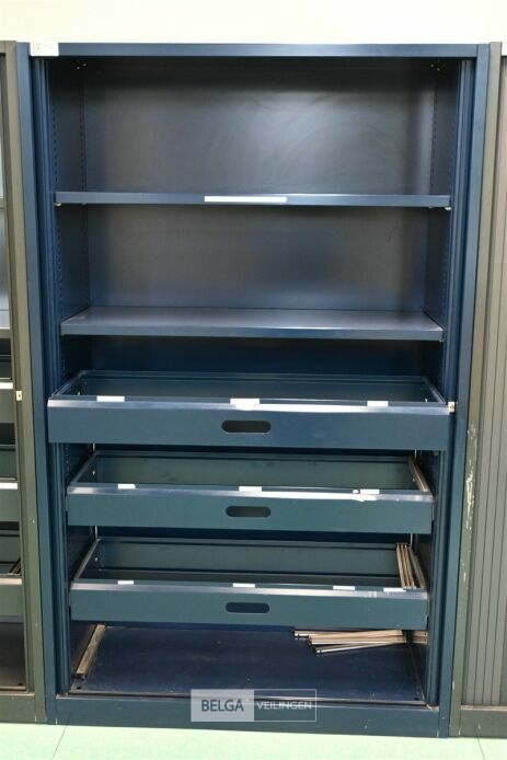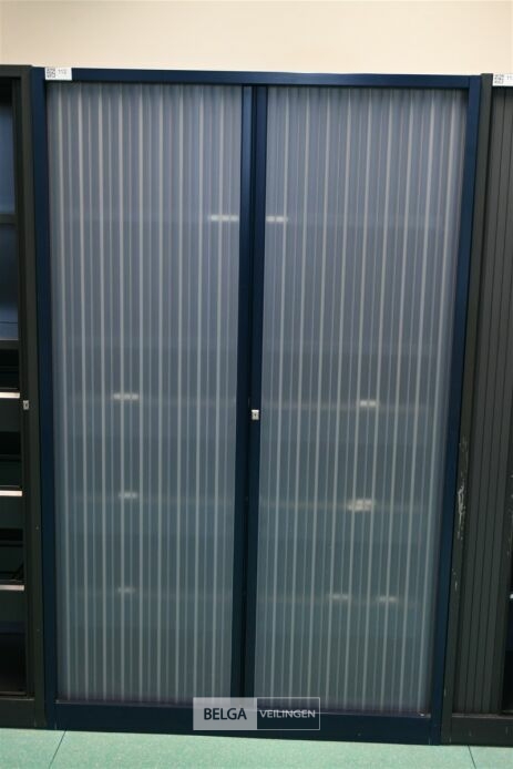 Archiefkast, Donkerblauw met transparante roldeuren, 120 x 45 x195 cm, 2 Leggers en 3 hangklassementen