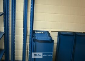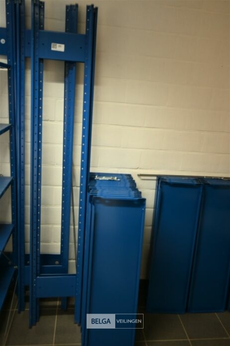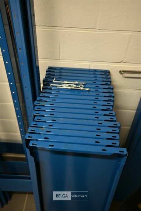 Blauw metalen archiefrek, 100 x 34 x 200 cm, 6 metalen leggers