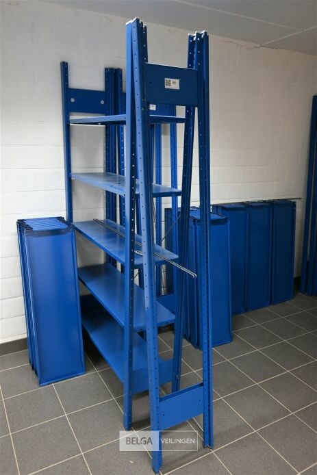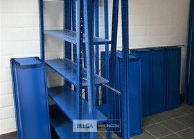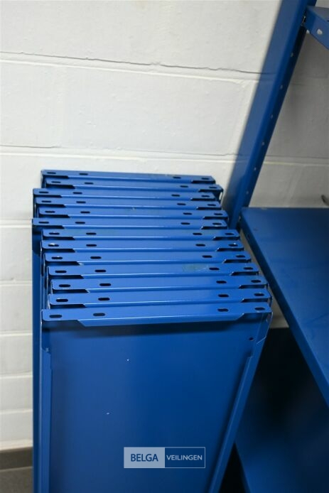Blauw metalen archiefrek, 100 x 34 x 200 cm, 6 metalen leggers