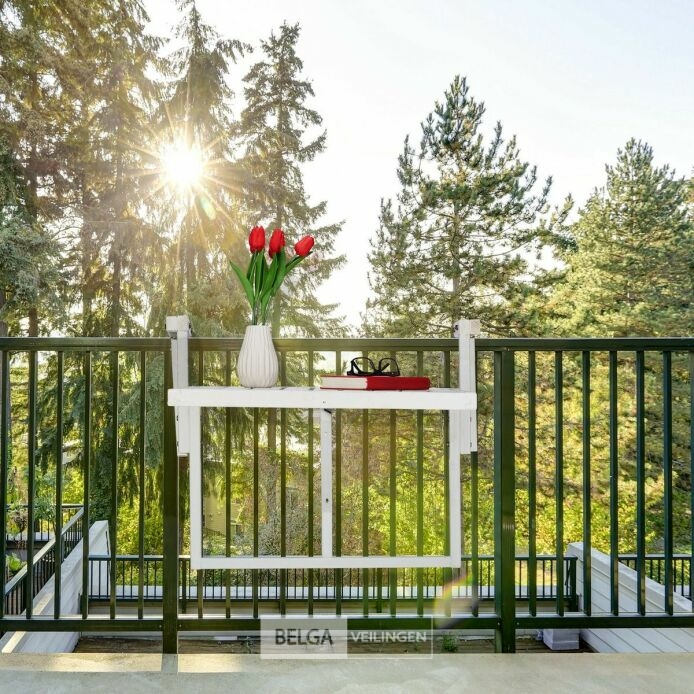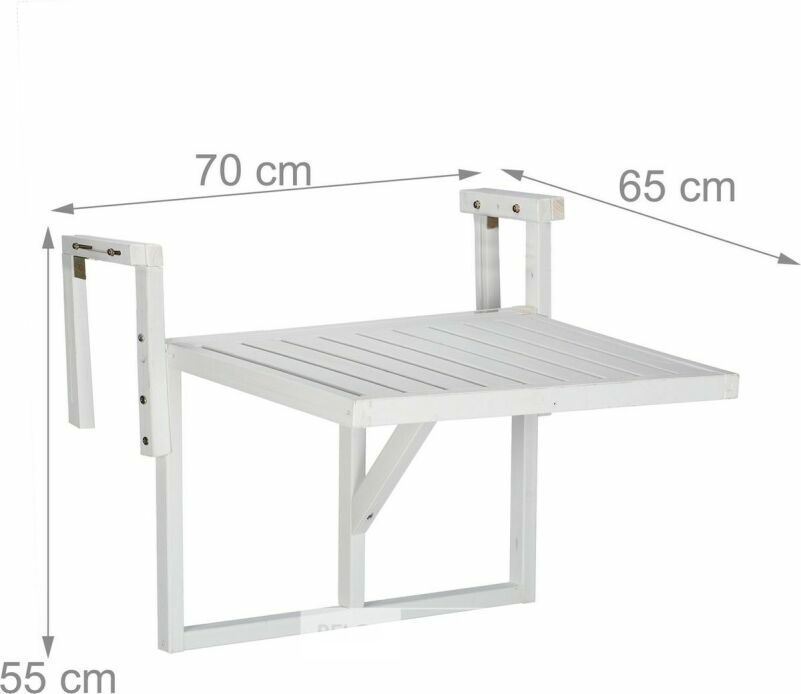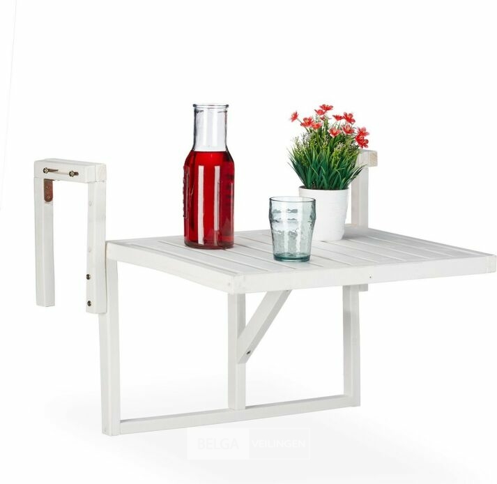 balkontafel - hangend - hoogte verstelbaar - inklapbaar - 55 x 70 x 65 cm - hout - wit-retouren van Relaxdays