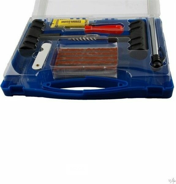 Banden reparatie set 27-dlg. voor snelle nood reparatie van Tubeless banden, Incl. 20 proppen en 20 gr. lijm met metalen priem en naald. Alleen in het loopvlak te gebuiken.