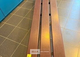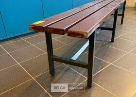 bruin solide kunststof zitting en zwart metalen onderstel 200 x 45 x 35 cm