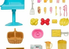 Barbie Je kunt een poppenlimonadewagen met speelgoedvoertuig en accessoires-Dreamland retour-zo goed als nieuw