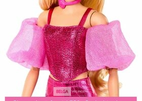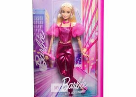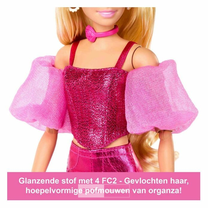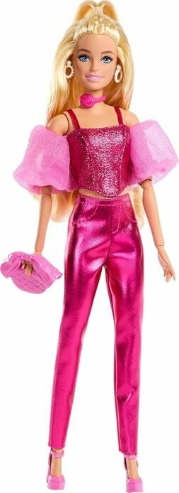Barbie Deluxe Style pop in Metallic Pink Outfit, Blonde Haren, glinsternde Topje en glanzende broek en Rose halskettinh -handtas-Dreamland retour