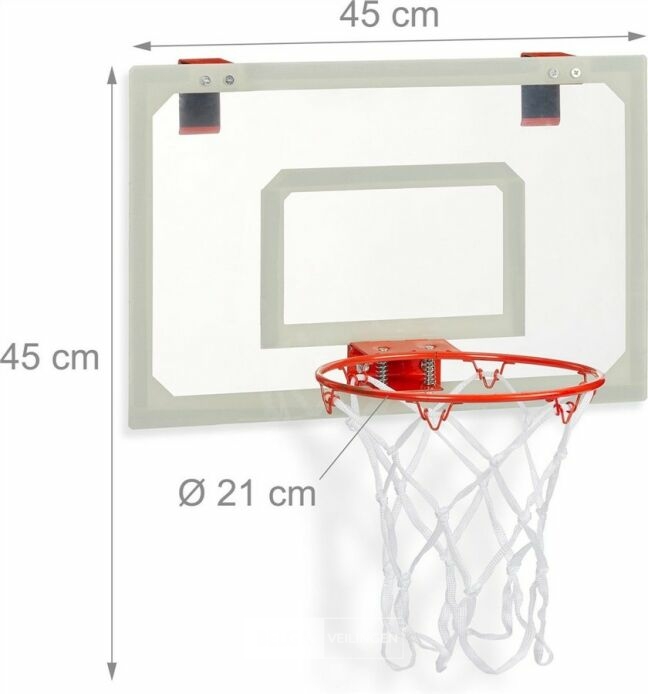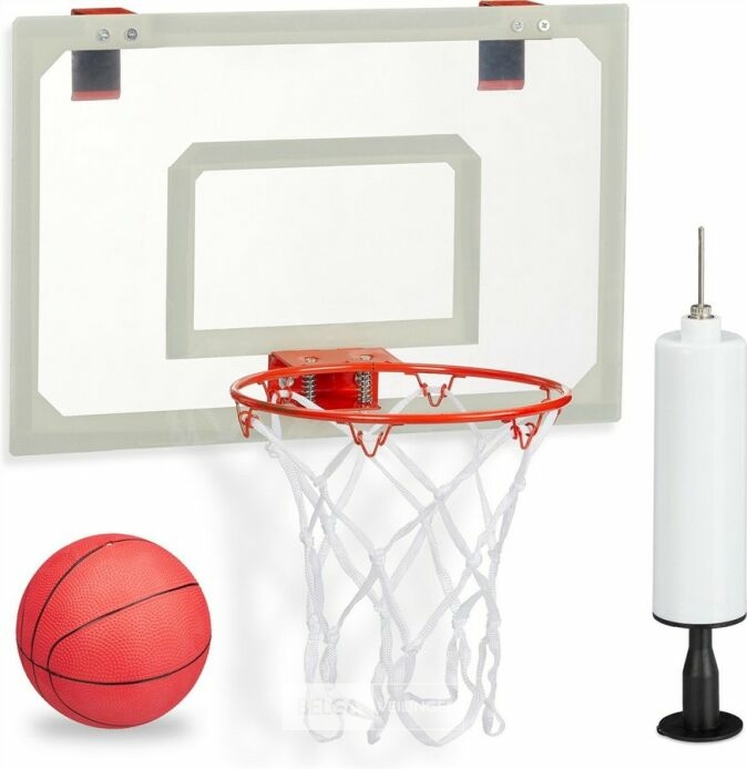 basketbalbord voor binnen - set met basketbal en pompje - indoor - aan deur - zonder boren-retour van relaxdays