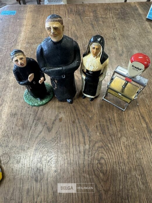 Beeldje “pastoor en non” + stempel Trodat 4206