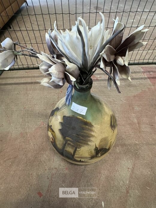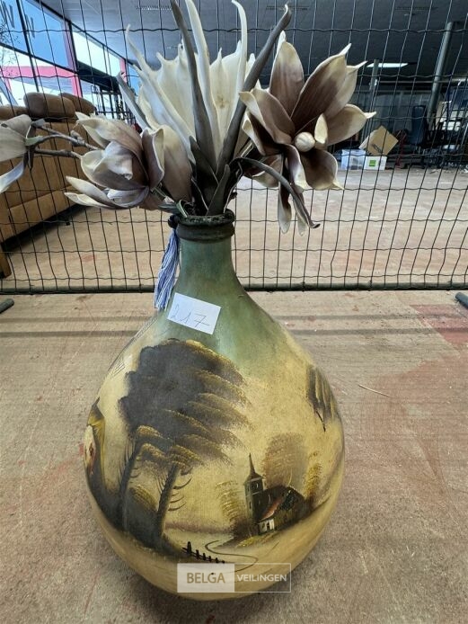 Beschilderd wijnvat met bloemen – Ø 50 cm – H ± 60 cm